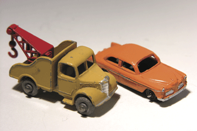 Sont venus, pour compléter mon "train-jouet", des wagons, des voitures voyageurs, des bâtiments, la gare, des véhicules, des figurines, des éléments de décor tels que barrières et arbres. Il aura fallu plusieurs anniversaires, plusieurs noëls et pas mal de bonnes notes à l'école (!!!) pour constituer un réseau digne d'intérêt. Nous n'étions pas encore dans le "modélisme" et tout le réseau était installé épisodiquement sur le parquet de ma chambre en toute simplicité.