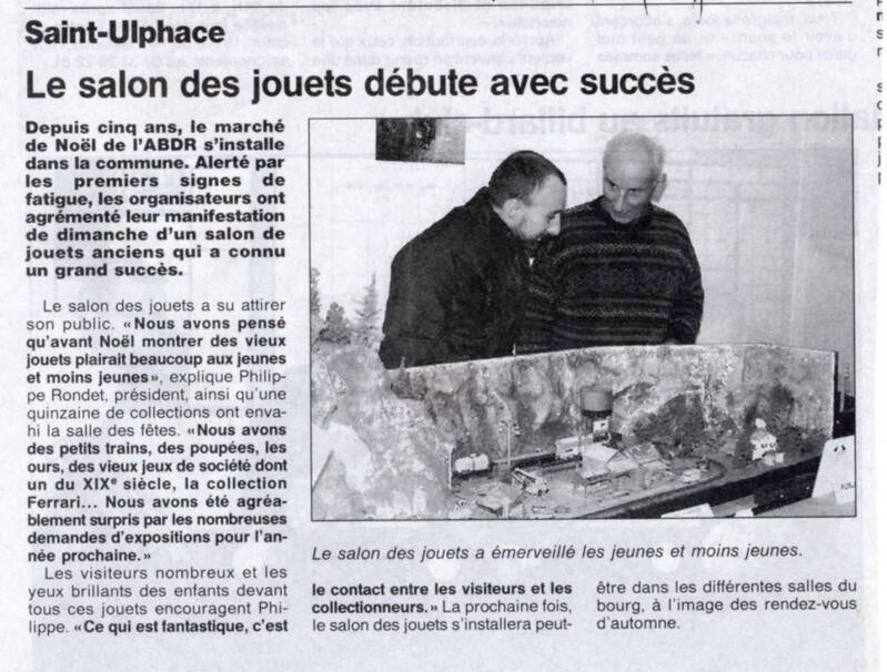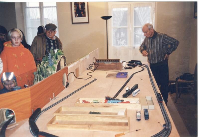 Alain, un photographe amateur, exposait des photos de gares de la région et afin d'agrémenter son stand avait installé quelques locos et wagons de son enfance. Évidemment le jouet nous a tout de suite rapprochés. Après en avoir discuté tout l'après-midi nous sommes tombés d'accord sur l'utilité de créer un salon du petit train dans ce même village.